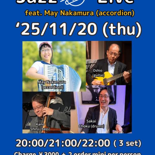 中村メイ(acc)、Oshio(g)、加納真治(b)、阪井ちょく(ds)