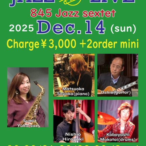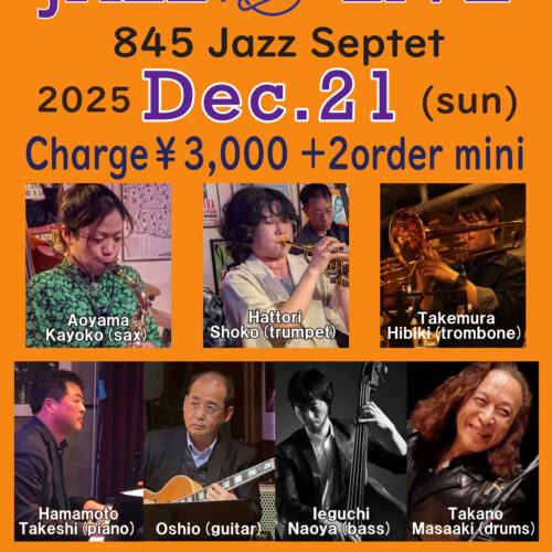 Jazz Live “The 845 Jazz Sextet” (毎月出演)
