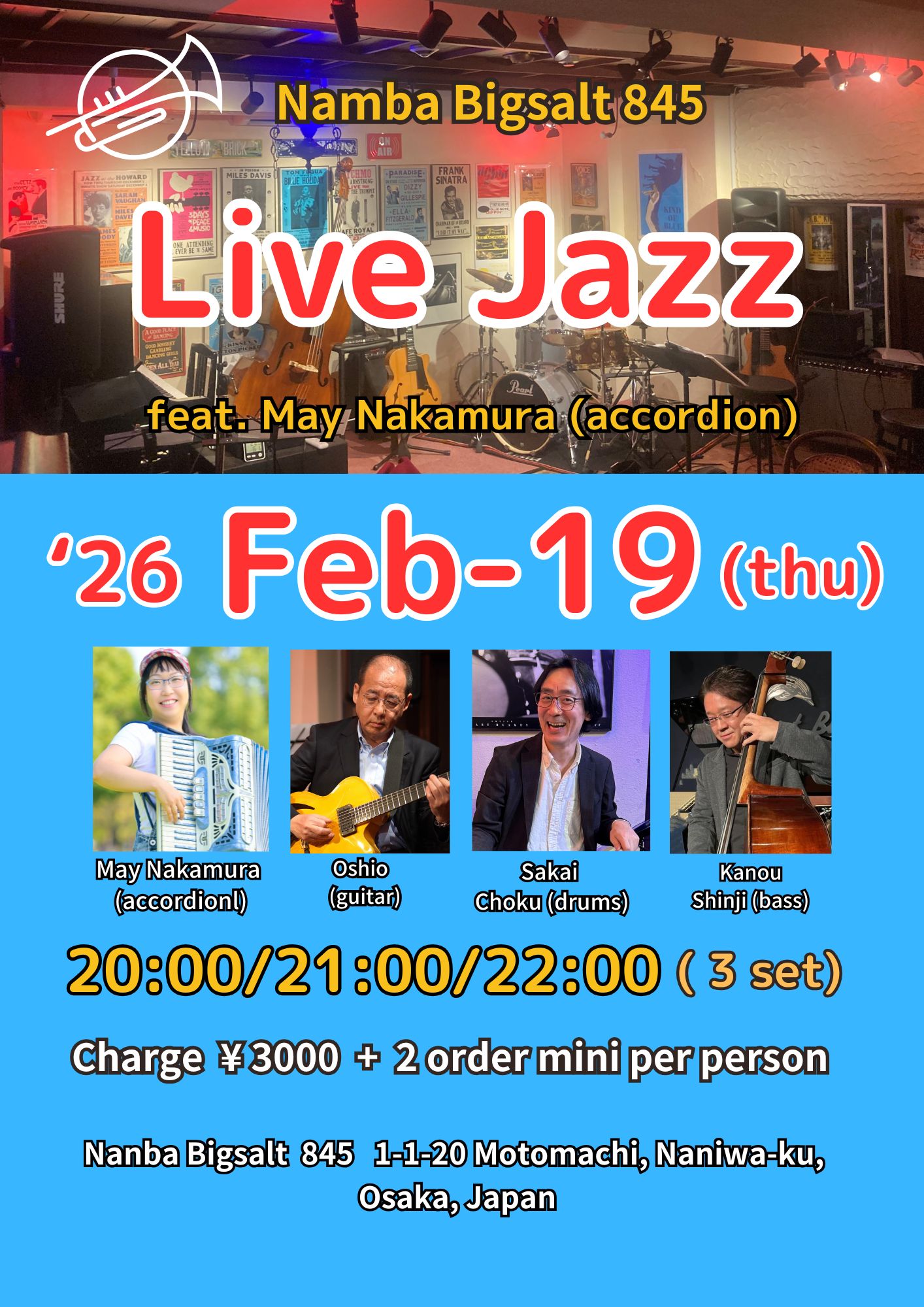中村メイ(acc)、Oshio(g)、家口直哉(b)、阪井ちょく(ds)