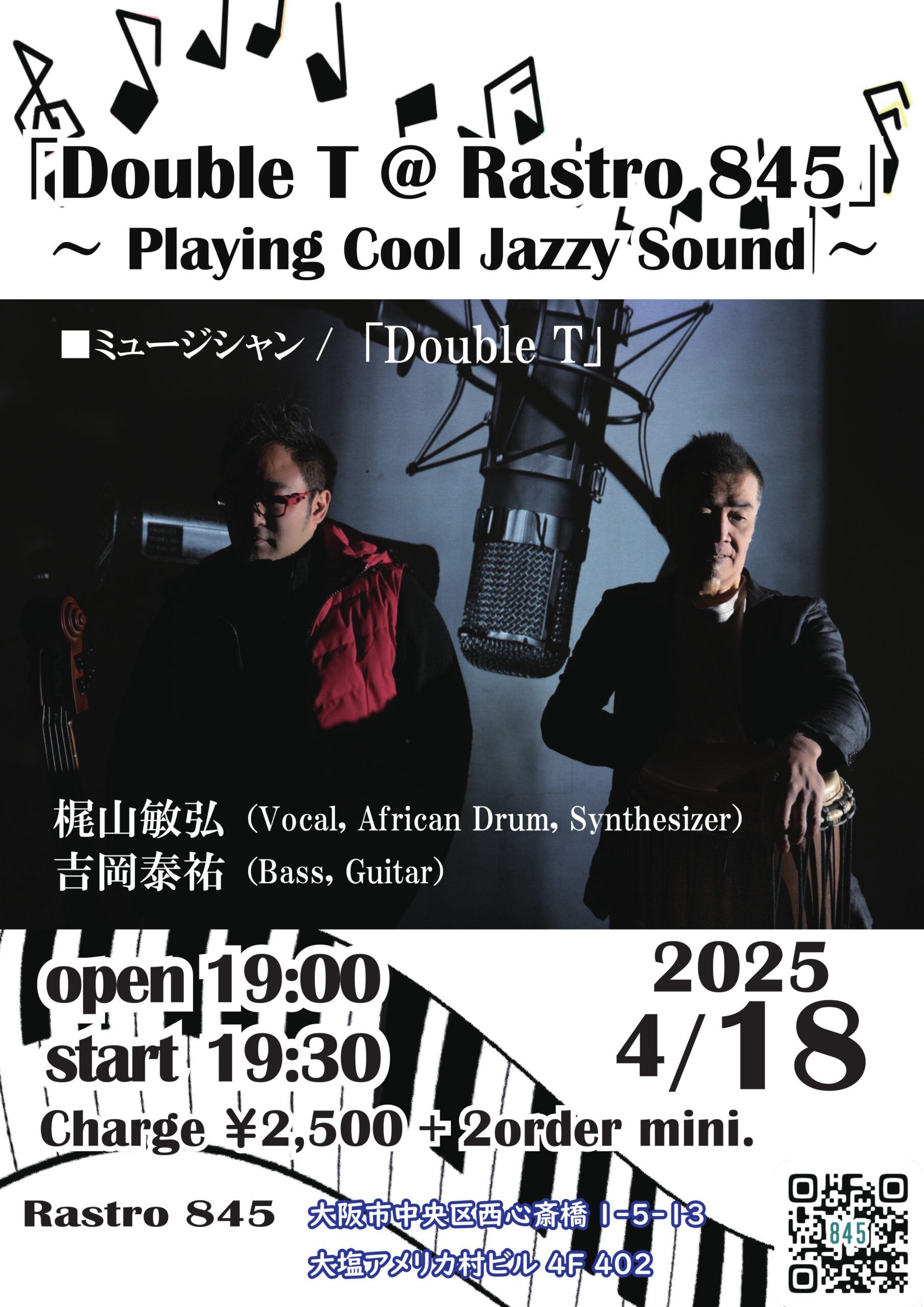 「Double T @ Rastro 845」 ~ Playing Cool Jazzy Sound 4月 18 Fri 2025 心斎橋 / Rastro845 メンバー 梶山敏弘(vo,Adr,Syn) 吉岡泰祐(B,gt) チャージ¥2500+2オーダー別途要 前のスケジュール 次のスケジュール