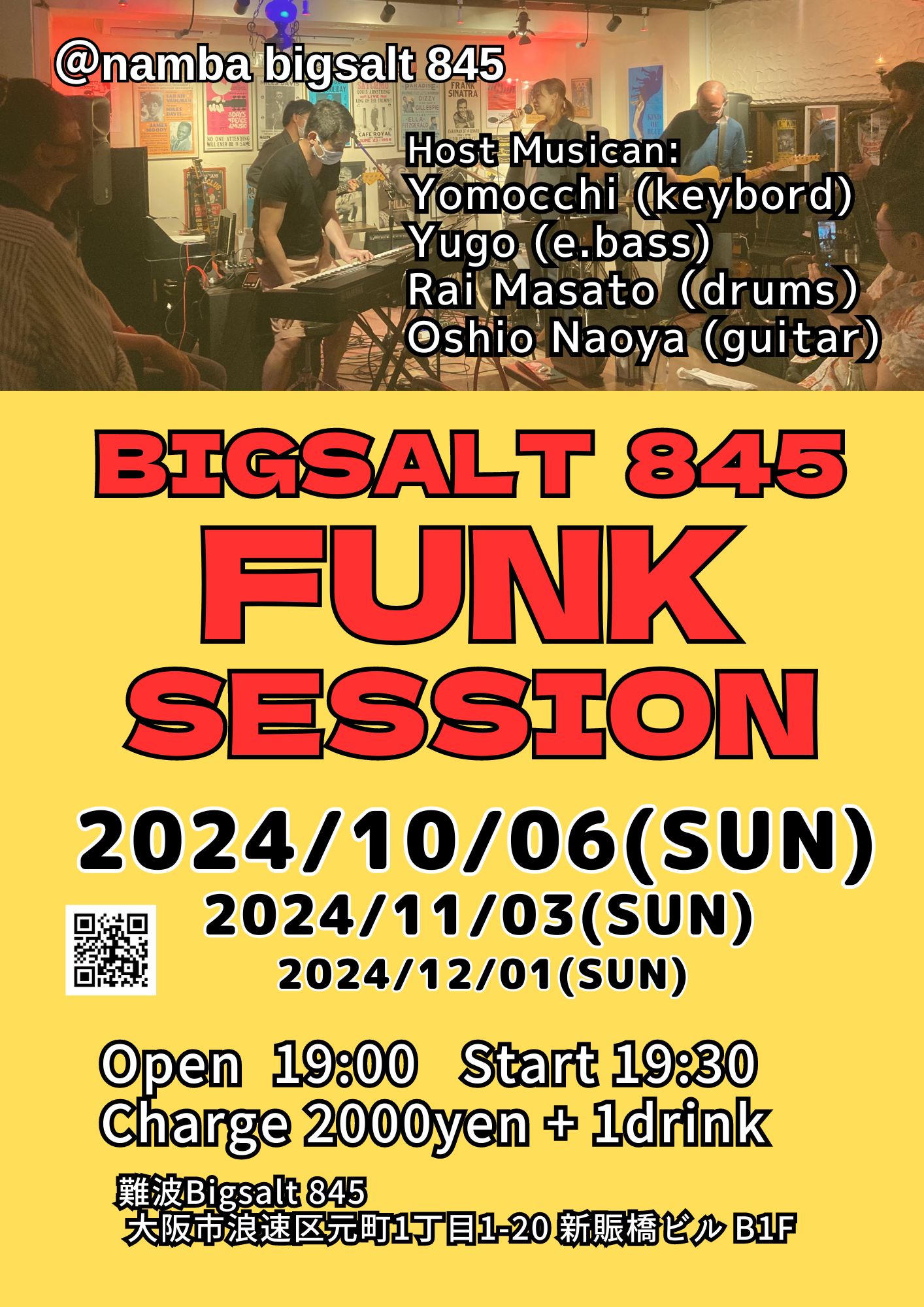 (夜) 845 Funk Session 10月 6 Sun 2024 難波 / Bigsalt845 メンバー Yomocchi (key) Yugo (eb) 来真人 (ds) 大塩直哉 (g) チャージ¥2000+1オーダー別途要 前のスケジュール 次のスケジュール