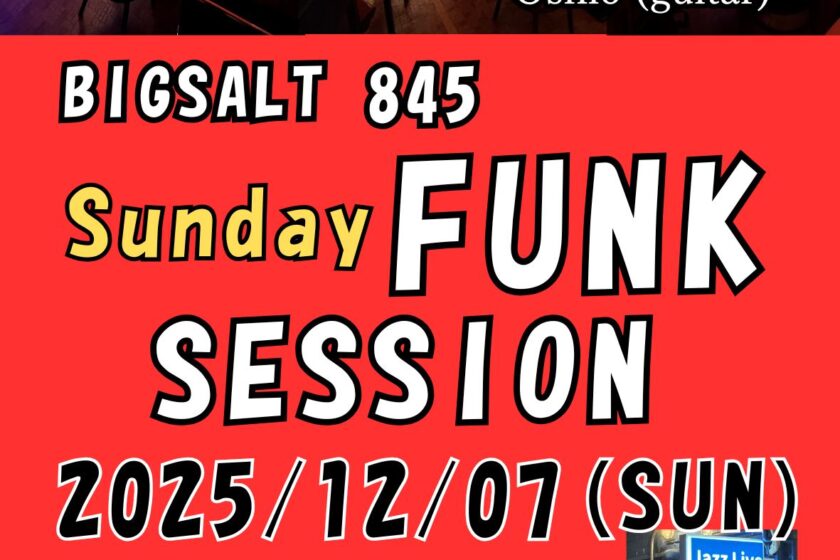 (夜) 845 Sunday Funk Session 12月 7 Sun 2025 難波 / Bigsalt845 メンバー Yomocchi(key)、Yugo(eb)、Rai Masato(ds)、Oshio(g) チャージ¥2000+1オーダー別途要 前のスケジュール 次のスケジュール