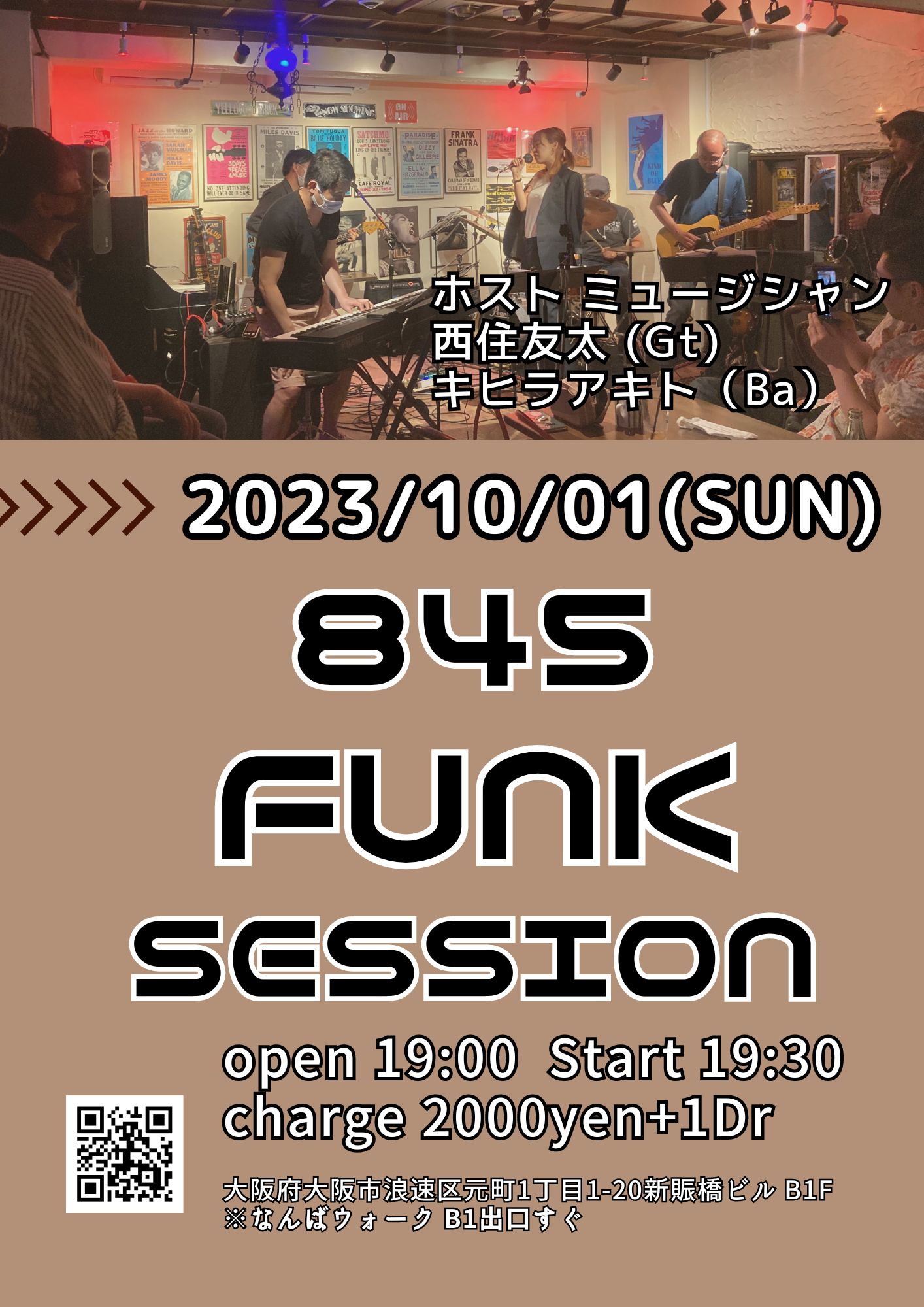(夜) 845 Funk Session 10月 1 Sun 2023 難波 / Bigsalt845 メンバー キヒラ 西住友太(g) チャージ¥2000+ドリンク別(1杯以上注文) 前のスケジュール 次のスケジュール