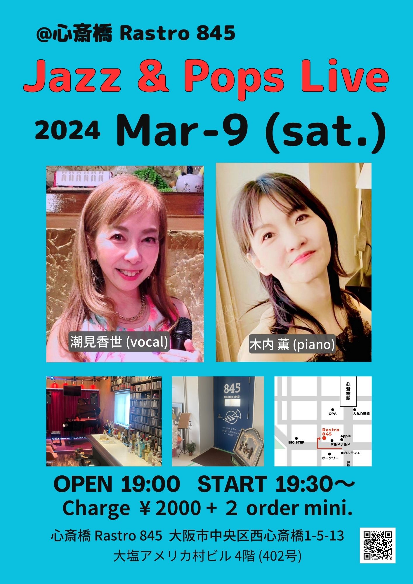 (夜) Jazz & Pops Live 3月 9 Sat 2024 心斎橋 / Rastro845 メンバー 木内薫 (p) 潮見香世 (vo) チャージ¥2000+2オーダー別途要 前のスケジュール 次のスケジュール
