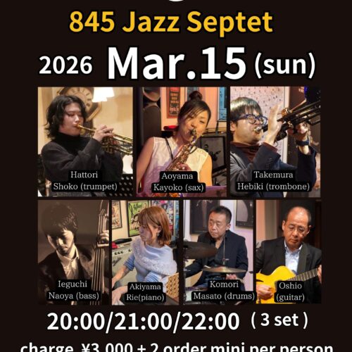 (夜) Live Jazz – 845 Septet (毎第3日曜夜)
