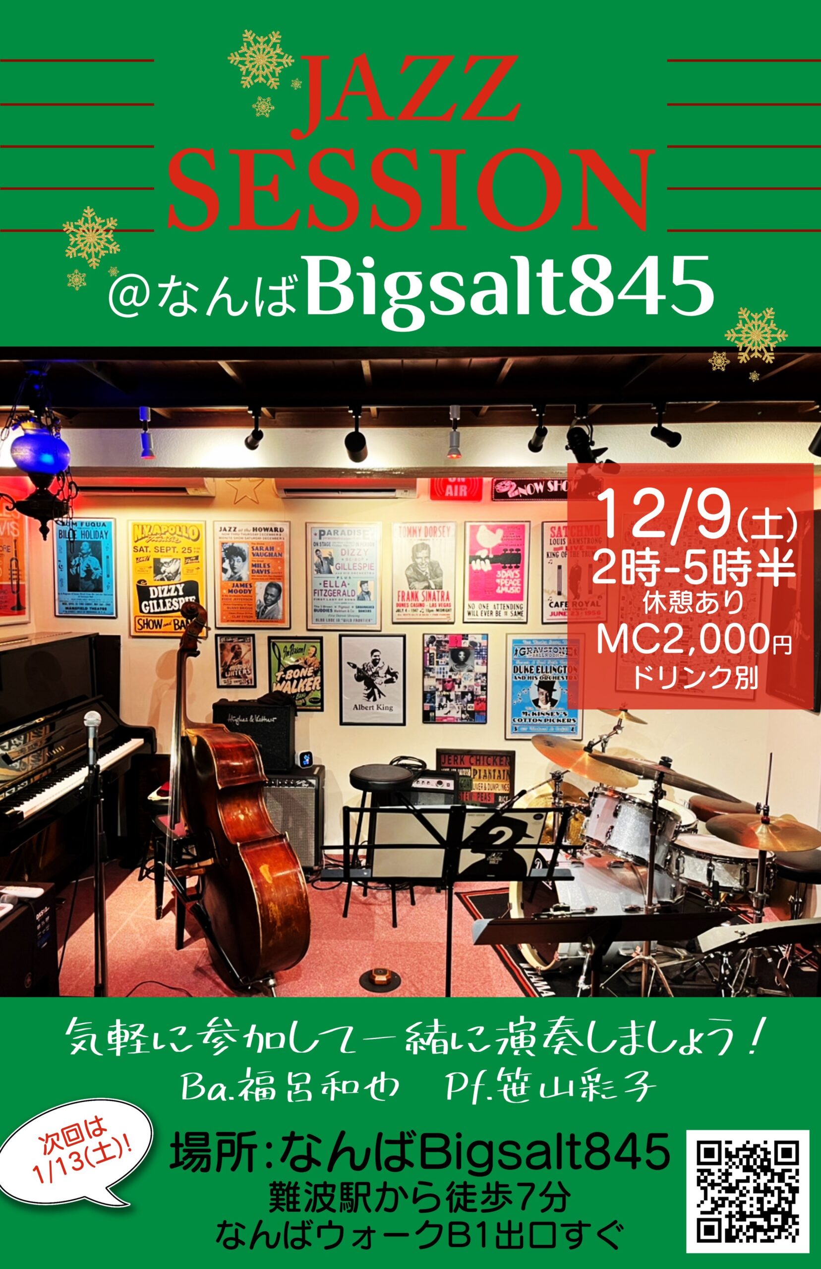 (昼)845 Jazz Jam Session 12月 9 Sat 2023 難波 / Bigsalt845 メンバー 笹山彩子(p) 福呂和也(b) チャージ¥2000+2オーダー別途要 前のスケジュール 次のスケジュール