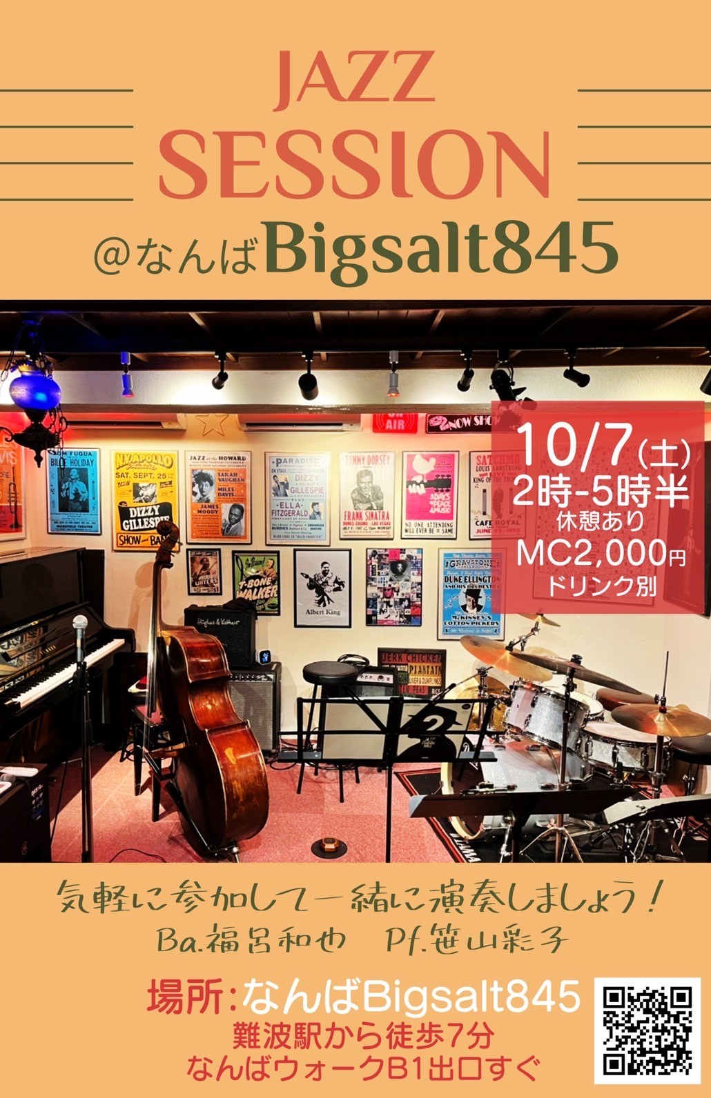 (昼) 845 Jam Session 10月 7 Sat 2023 難波 / Bigsalt845 メンバー 笹山彩子(p) 福呂和也(b) チャージ¥2000+2オーダー別途要 前のスケジュール 次のスケジュール