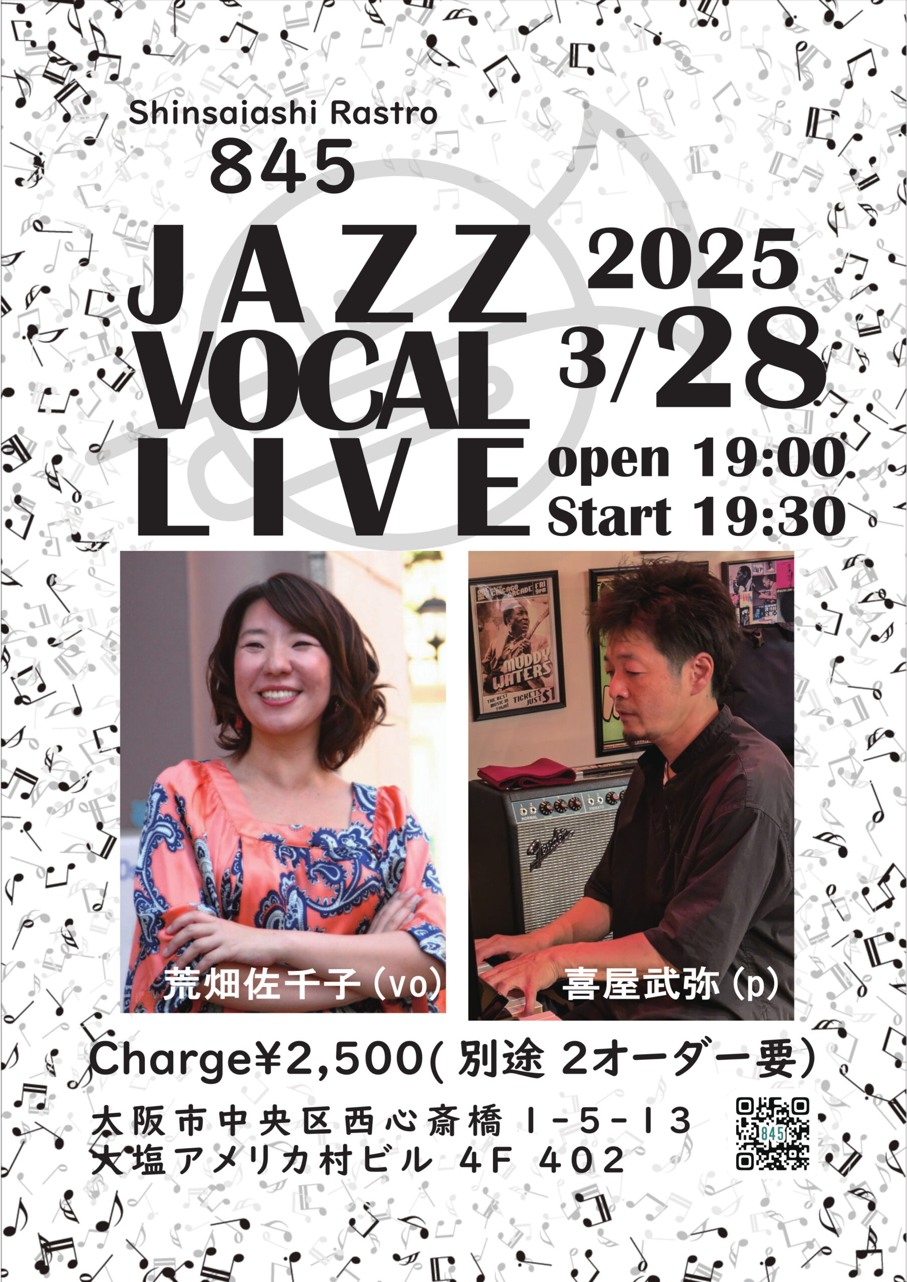 Jazz Vocal Live 3月 28 Fri 2025 心斎橋 / Rastro845 メンバー 荒畑佐千子(VO) 喜屋武弥(p) チャージ¥2500+2オーダー別途要 前のスケジュール 次のスケジュール