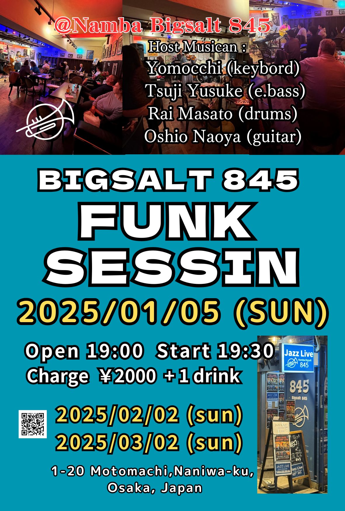 845 Funk Session 1月 5 Sun 2025 難波 / Bigsalt845 メンバー Yomocchi (key) 辻友輔(eb) 来真人 (ds) 大塩直哉 (g) チャージ¥2000+1オーダー別途要 前のスケジュール 次のスケジュール