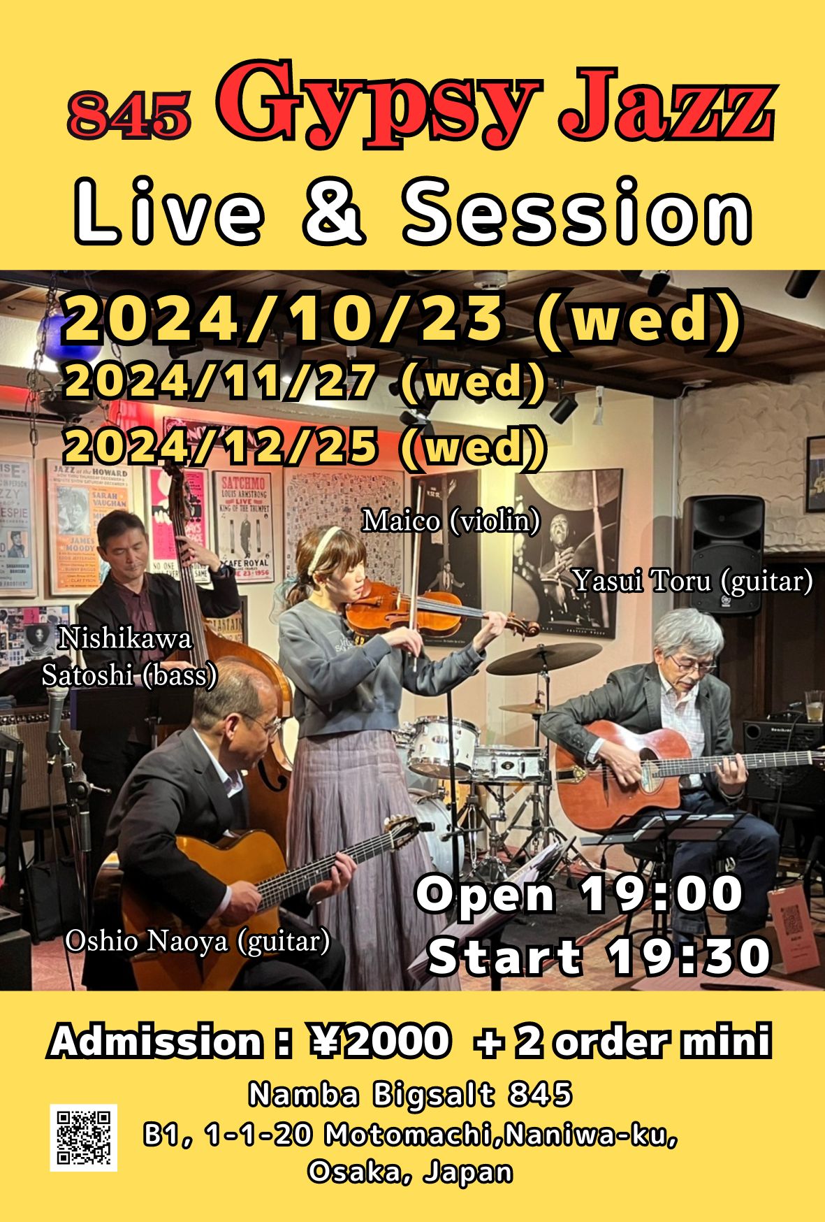 845 Gypsy Jazz Session 10月 23 Wed 2024 難波 / Bigsalt845 メンバー 西川サトシ (b) Maico(vn) 安井亨 (g) 大塩直哉 (g) チャージ¥2000+2オーダー別途要 前のスケジュール 次のスケジュール