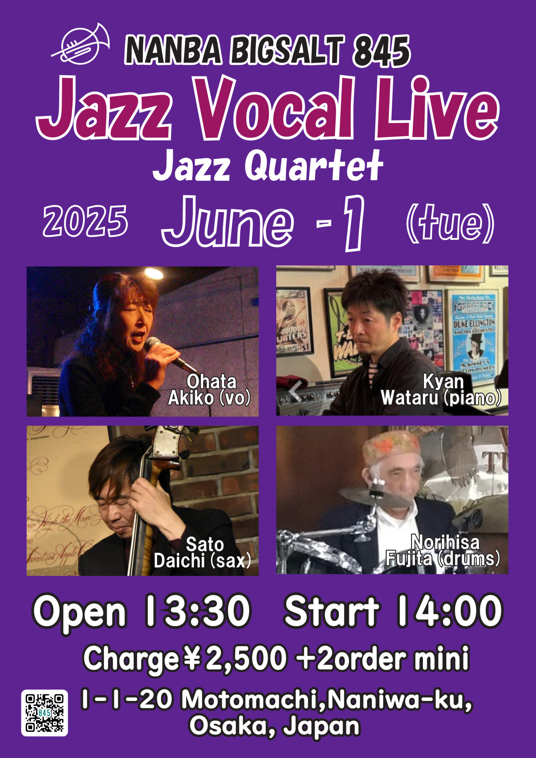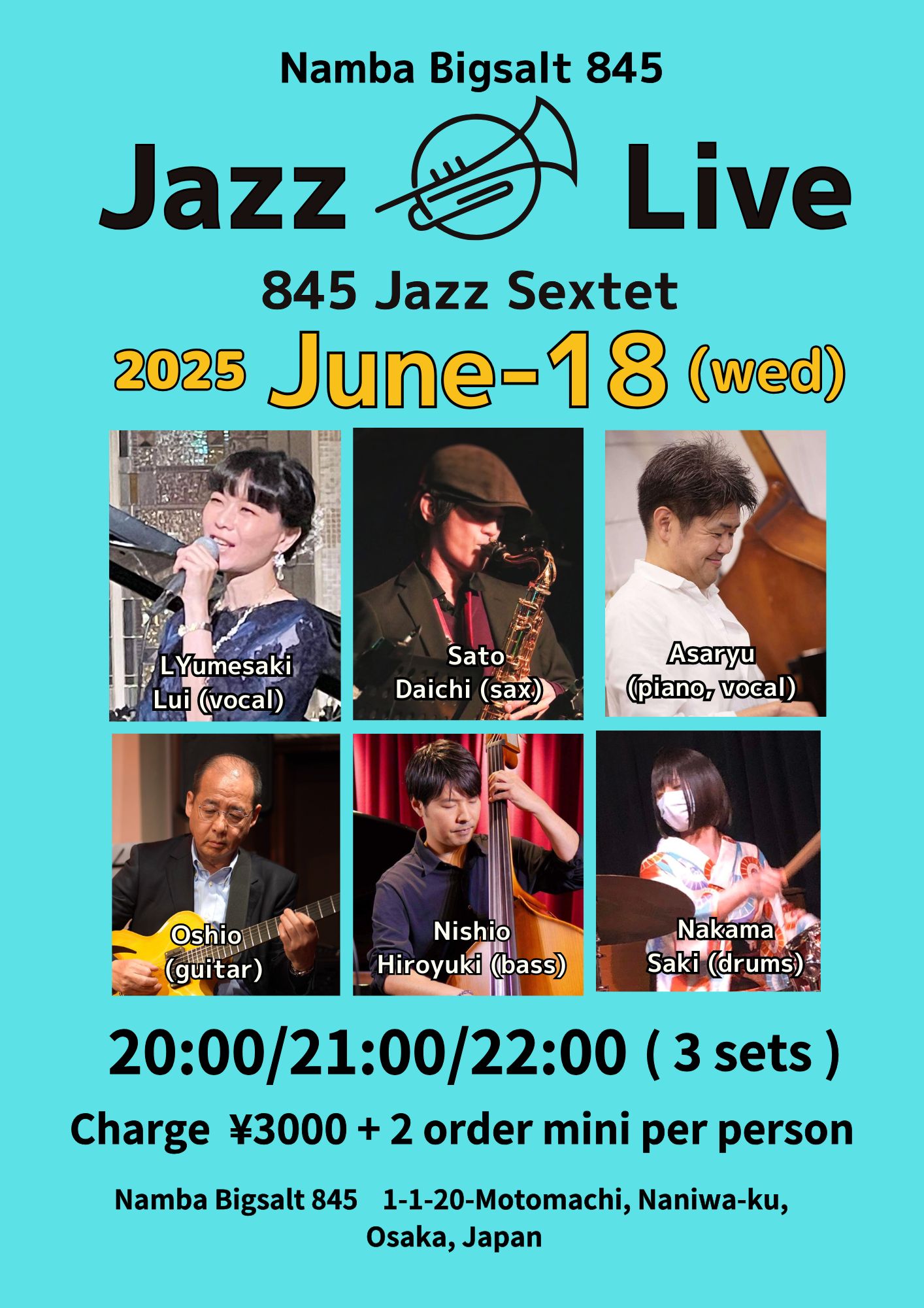 夢前るい(vo) 佐藤大地 (sax), 浅龍(vo,p),