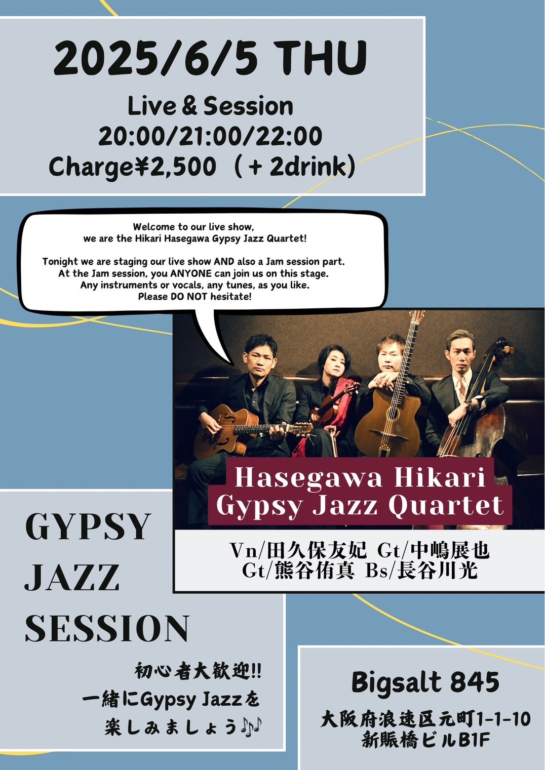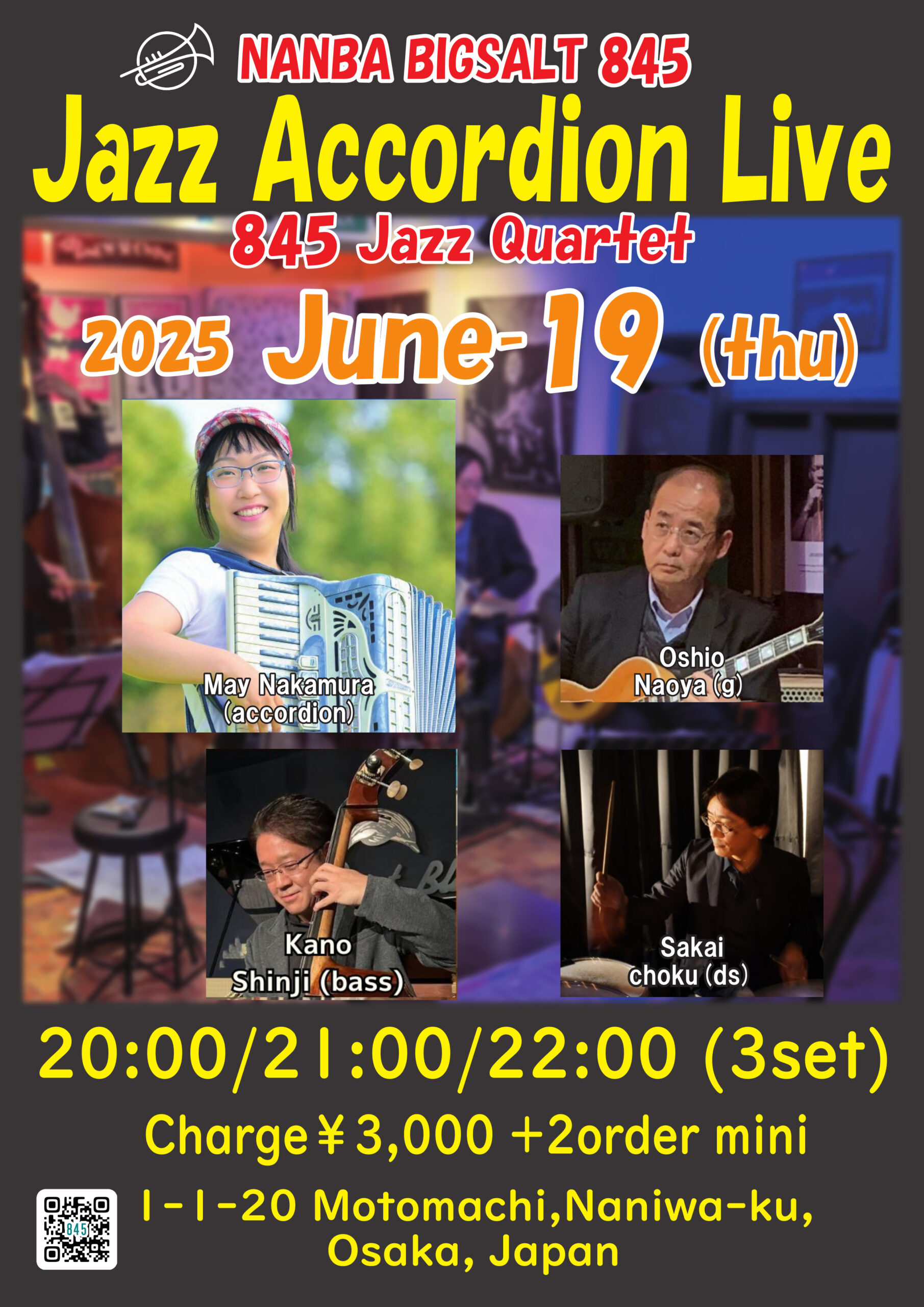 中村メイ(acc)、大塩直哉(g)、加納真治(b)、阪井ちょく(ds)