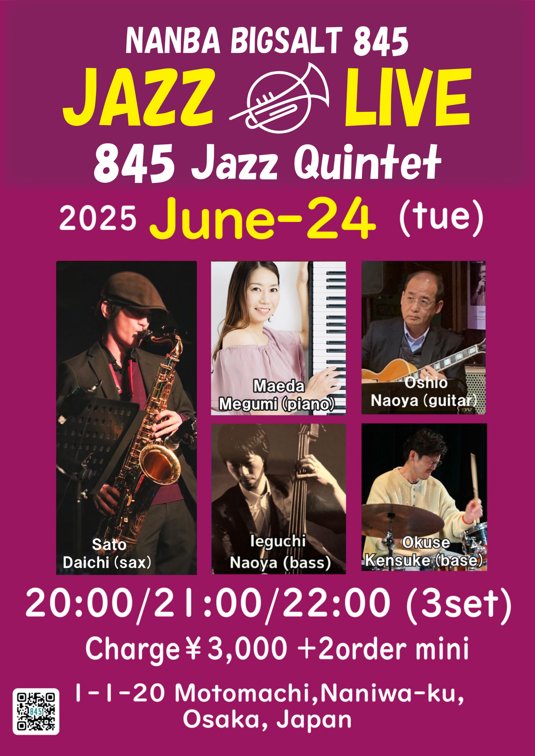 佐藤大地(sax)、前田めぐみ(p)、Oshio(g)