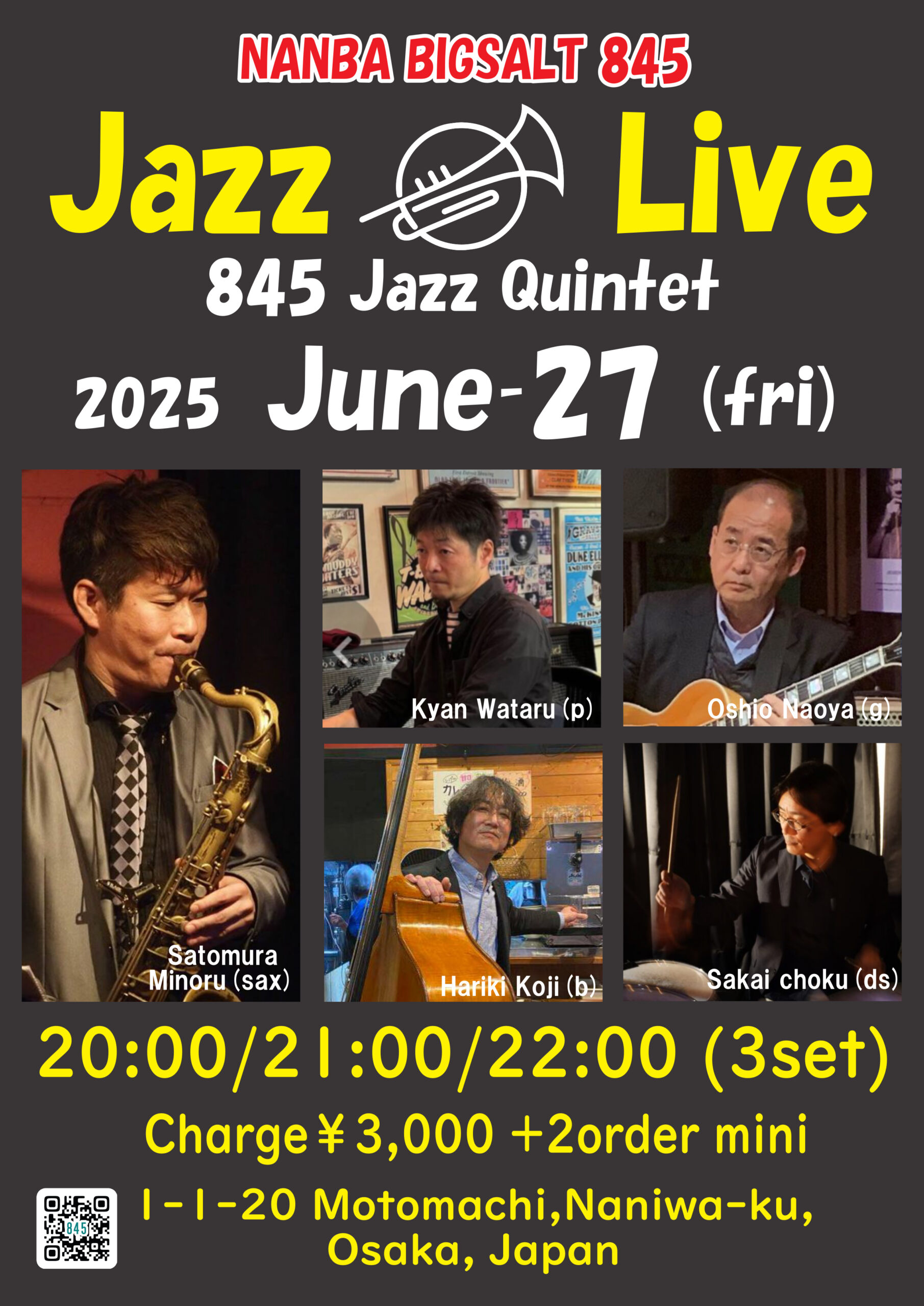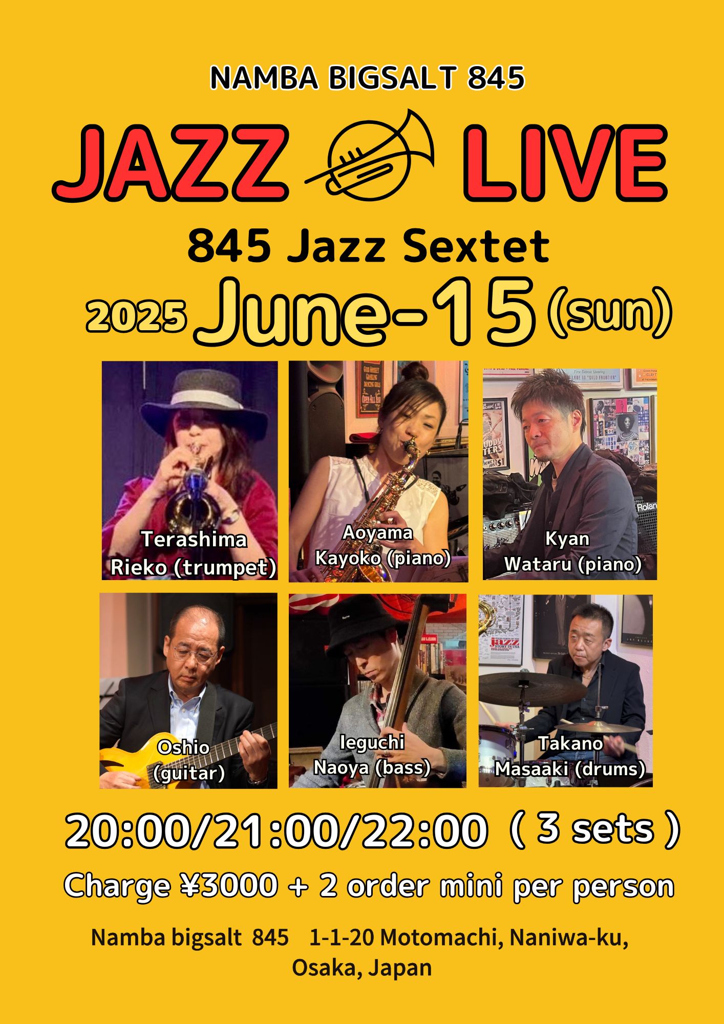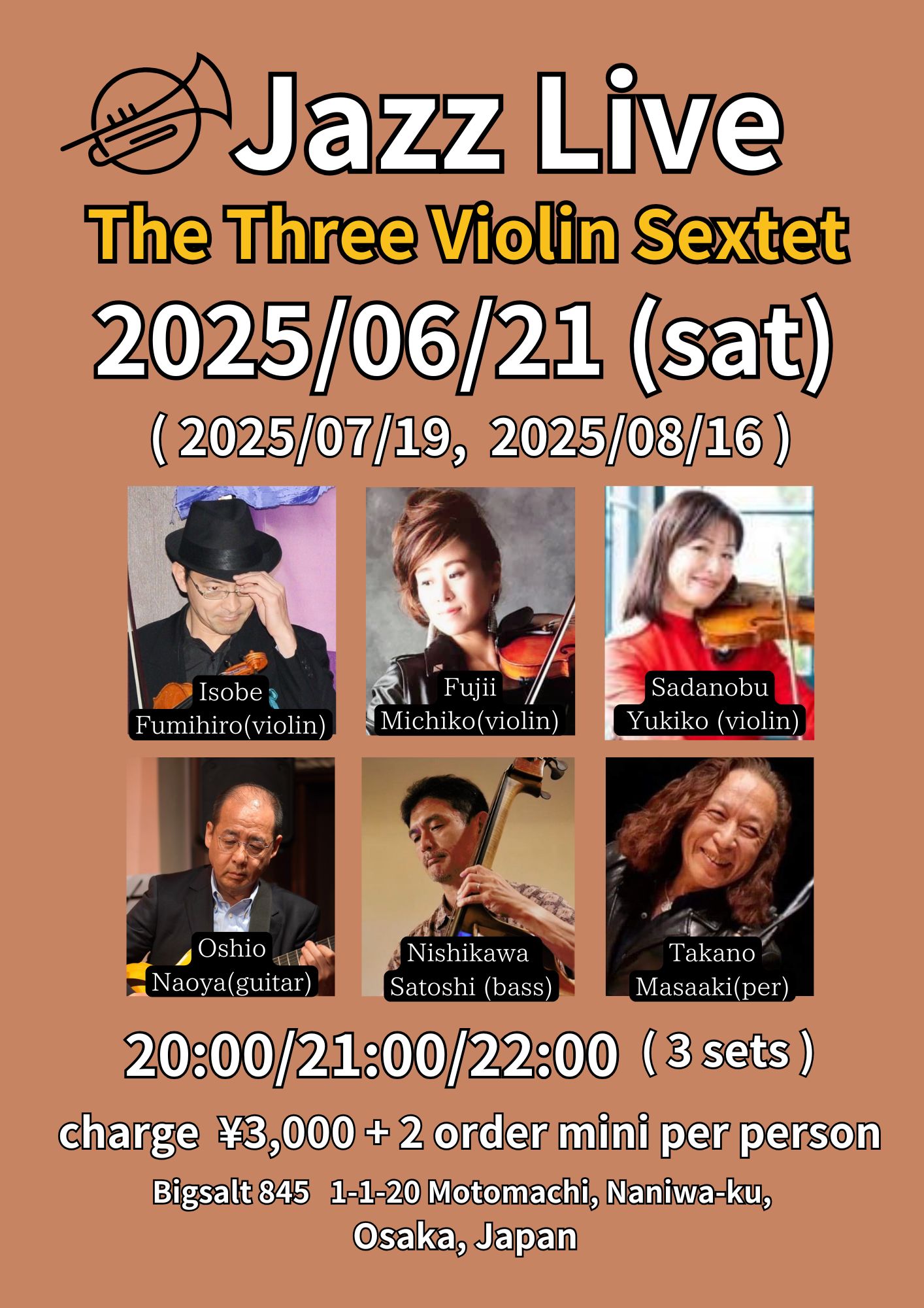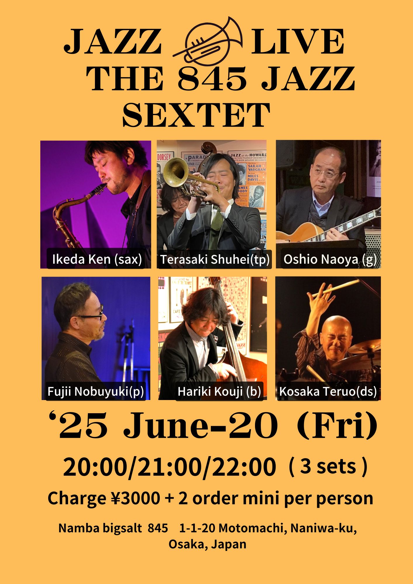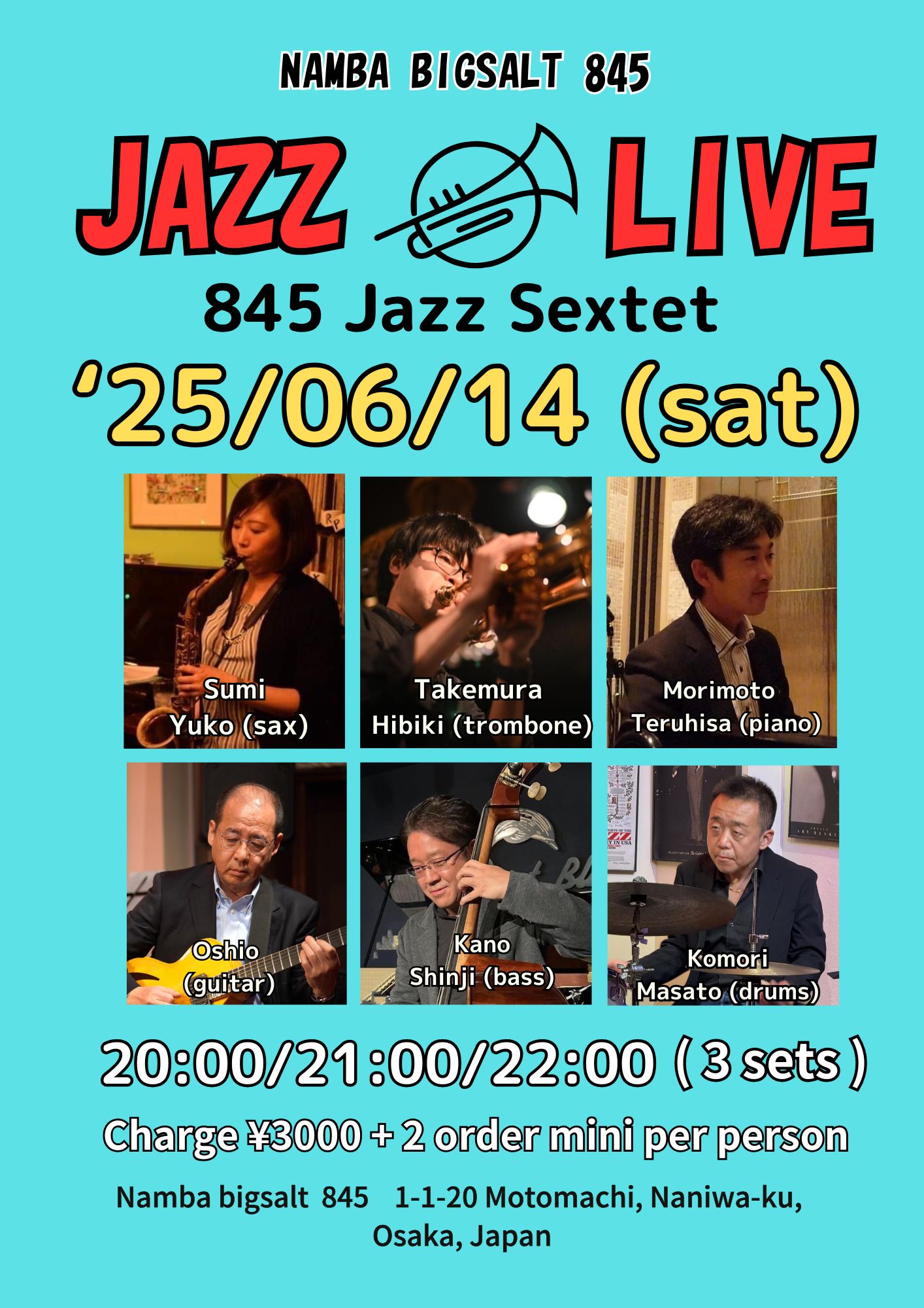 寺崎周平(tp)、池田ケン(sax)、大塩直哉(g)