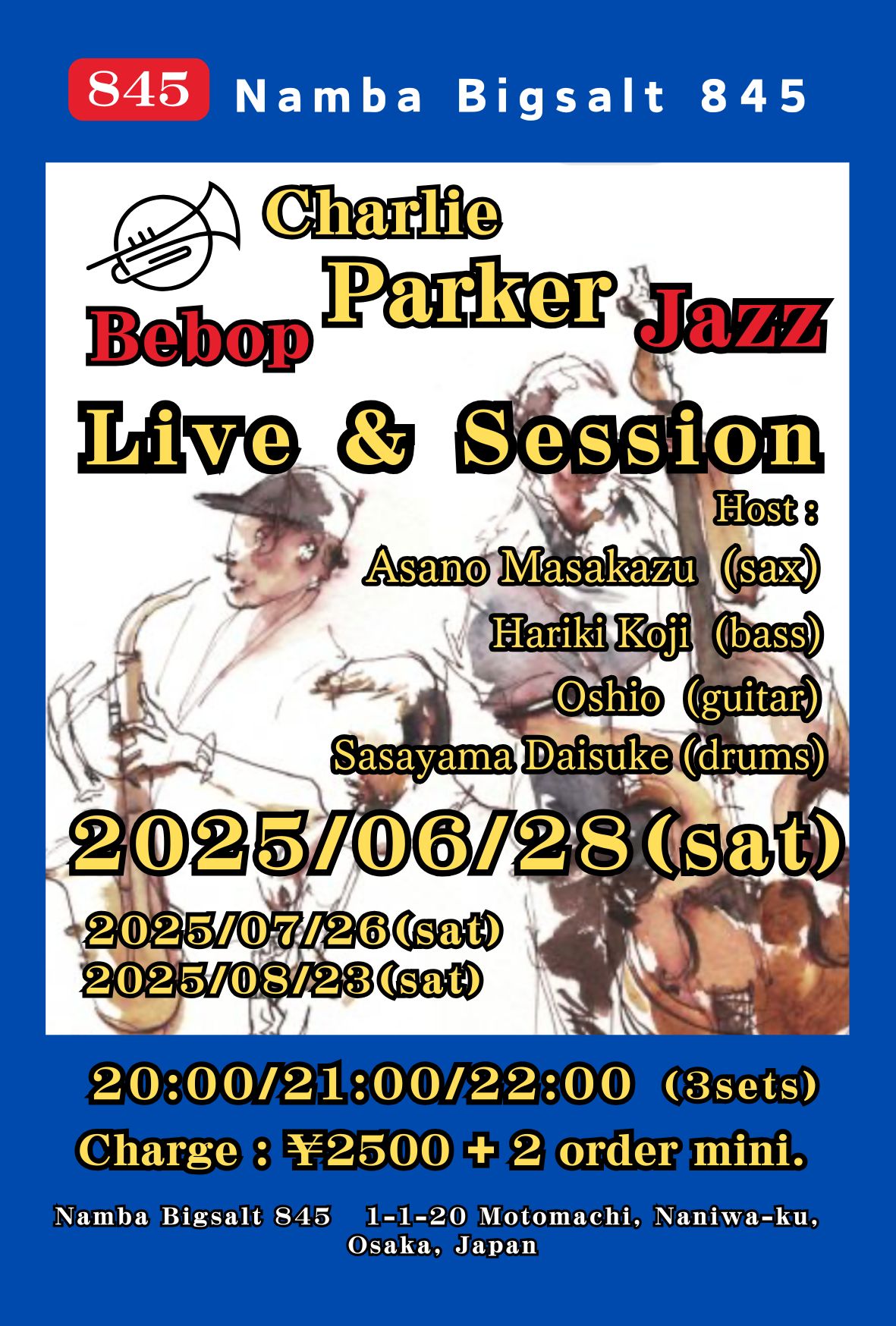 コウサカテルオ(ds)、佐藤大地(sax)、