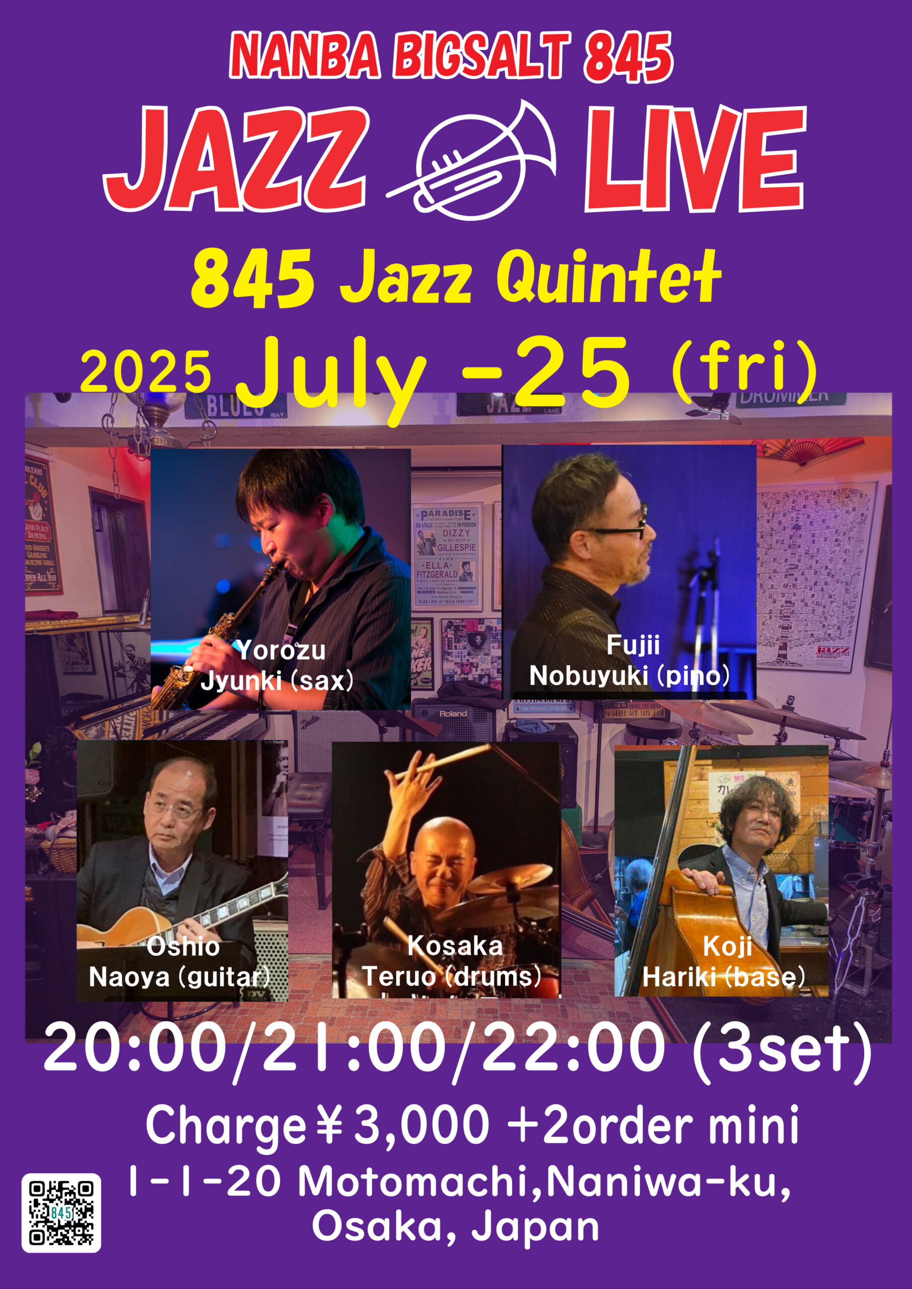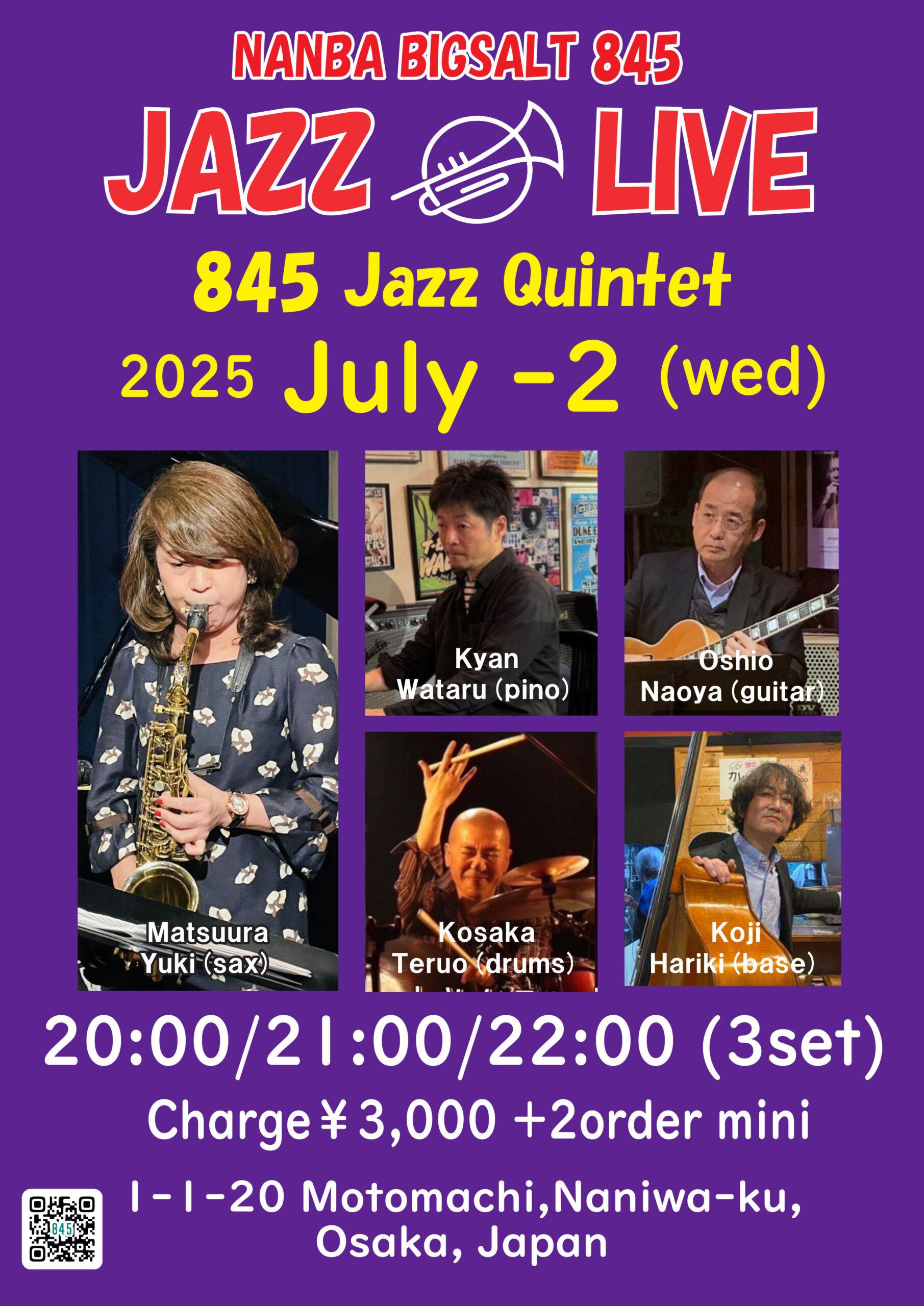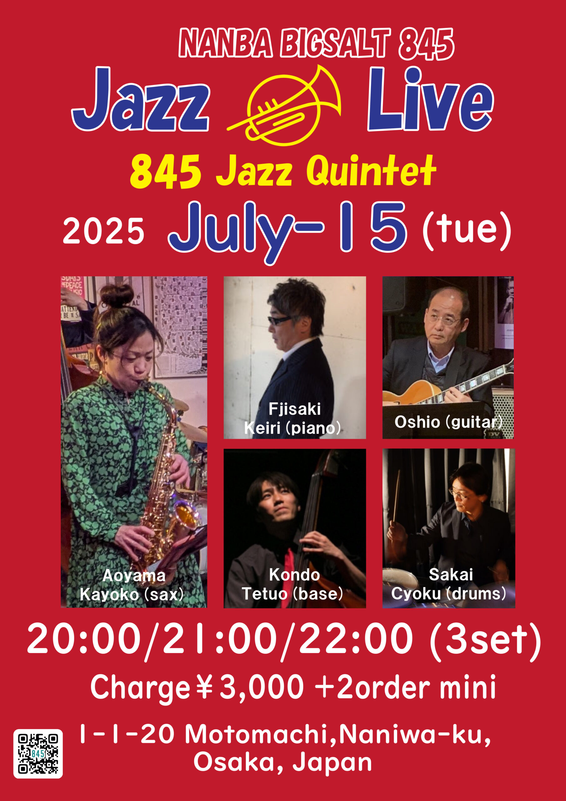 青山加世子(sax)、藤嵜佳里(p)、Oshio(g)、近藤哲生(b)、阪井ちょく(ds)