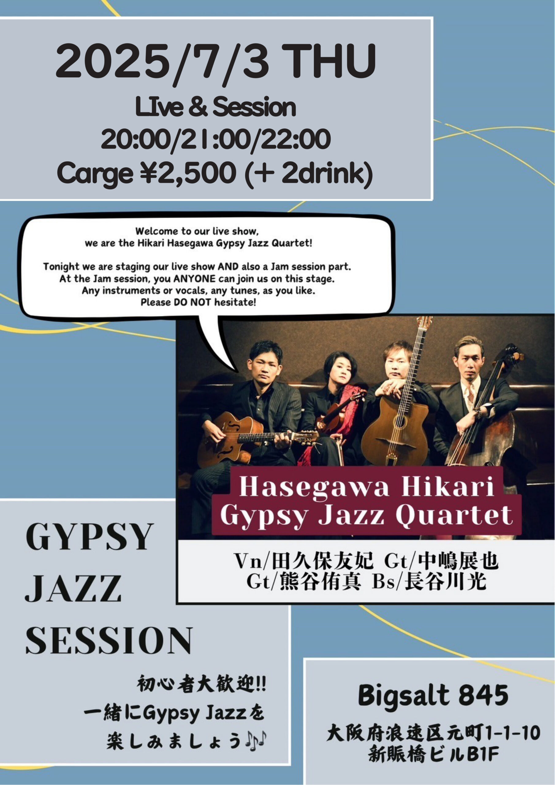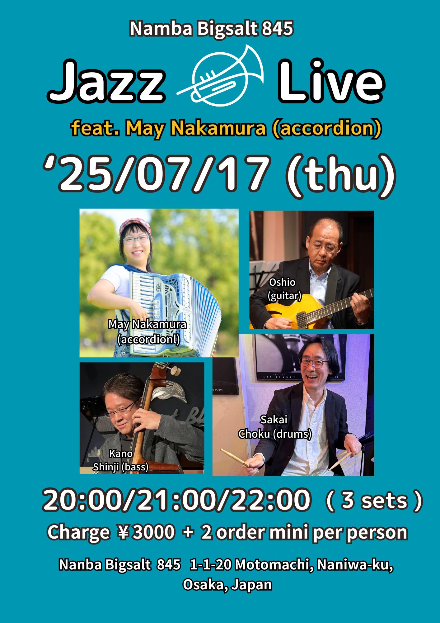 中村メイ(acc)、Oshio(g)、加納真治(b)、阪井ちょく(ds)