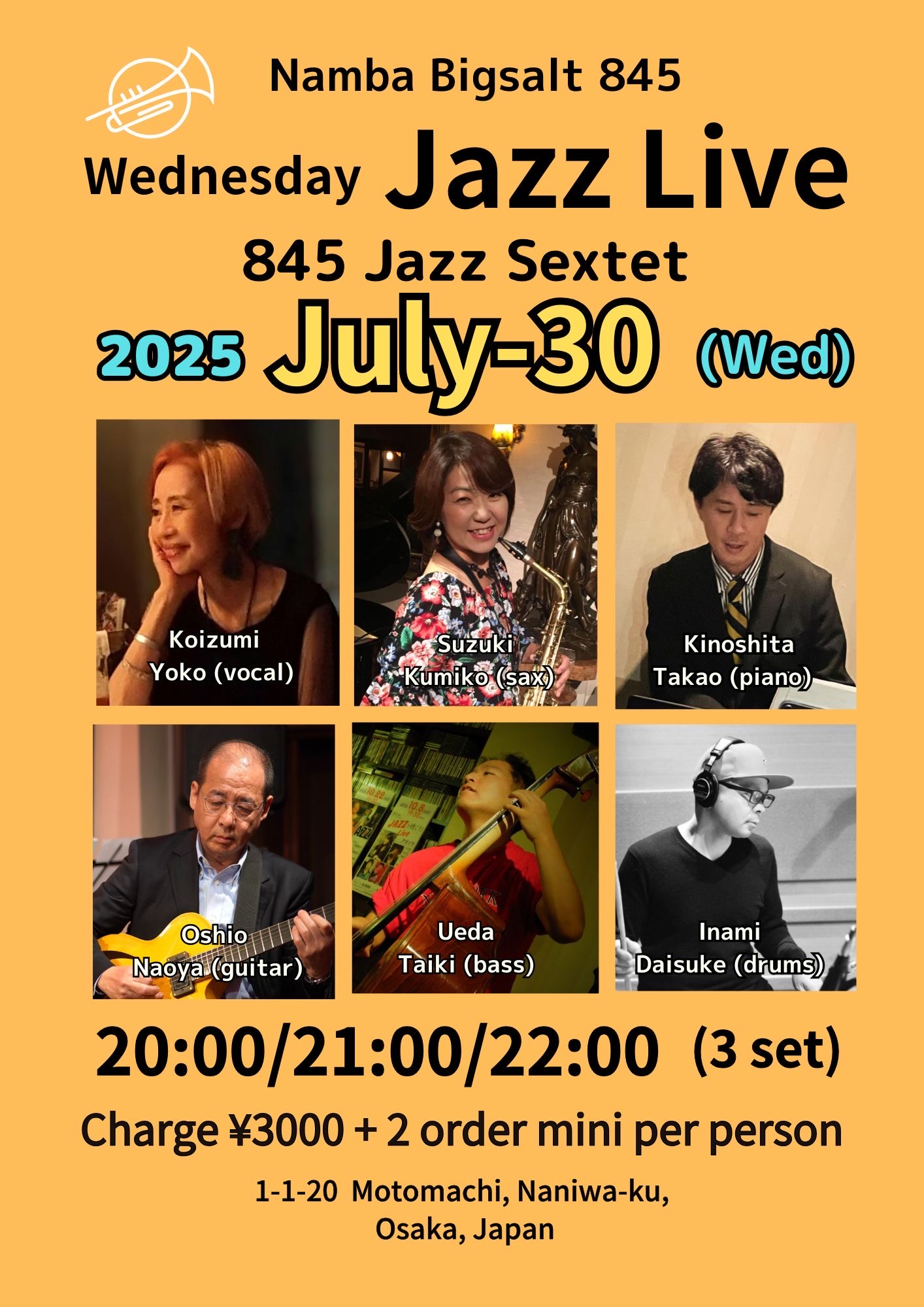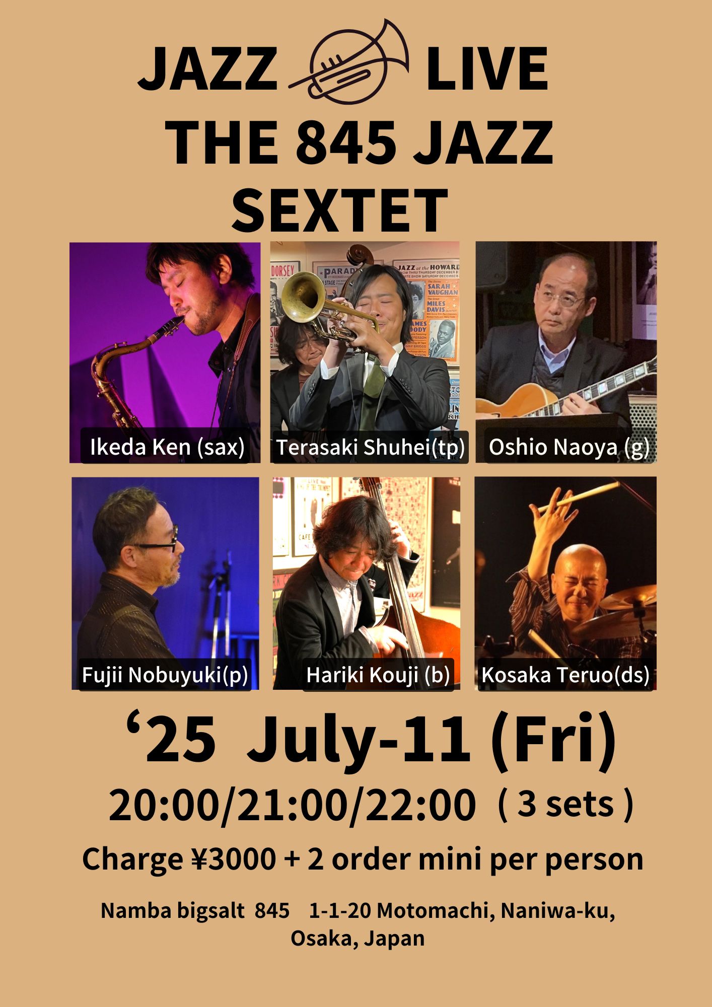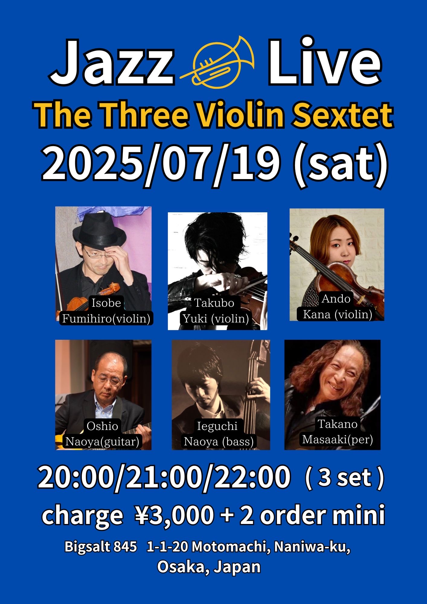 寺崎周平(tp)、池田ケン(sax)、大塩直哉(g)