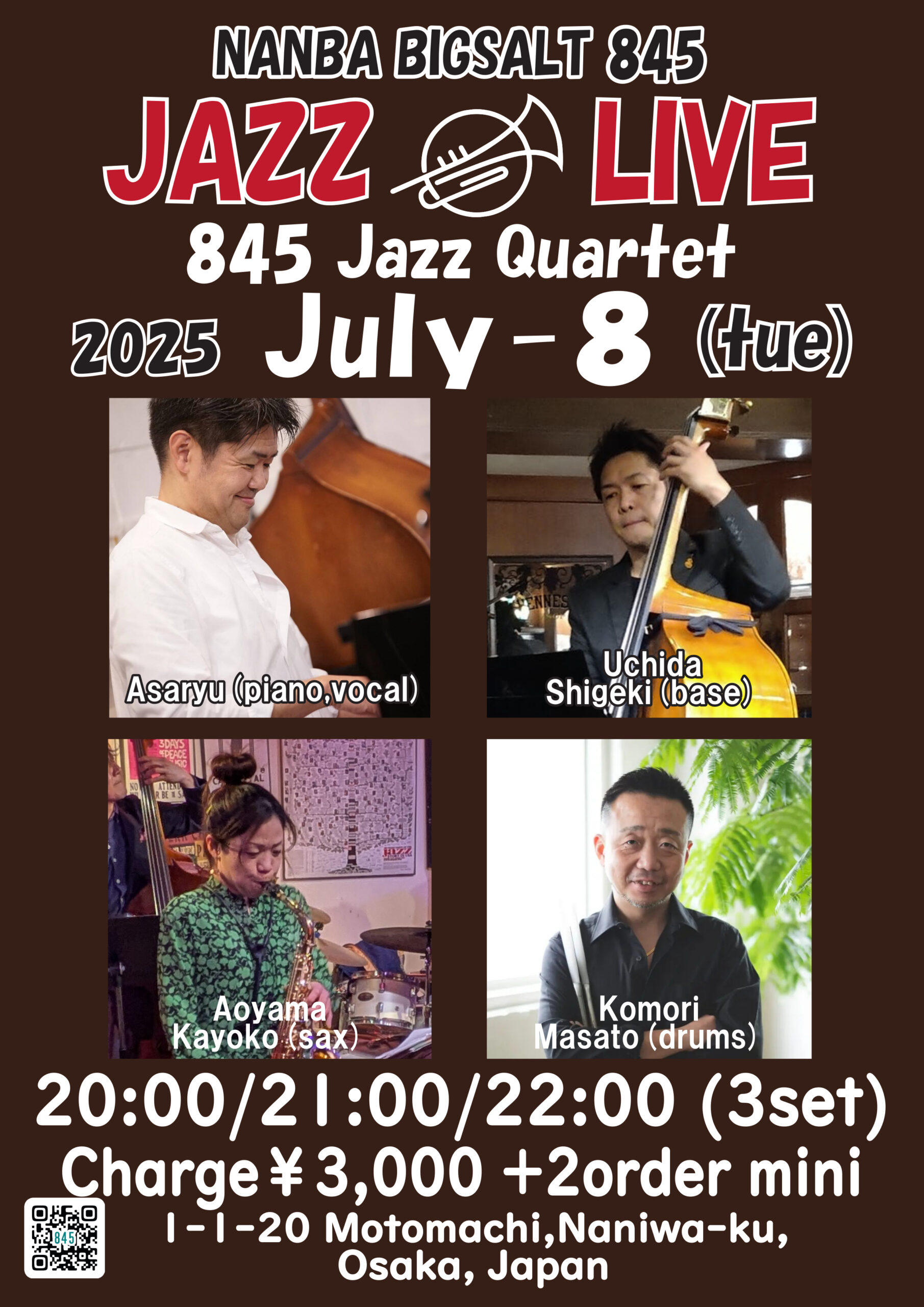 浅龍(p,vo)、青山加世子(sax)、内田しげき(b)、小森まさと(ds)