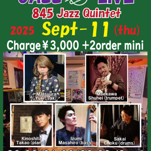 萬淳樹(sax)、喜屋武弥(p)、加納真治(b)、塩入基弘(ds)