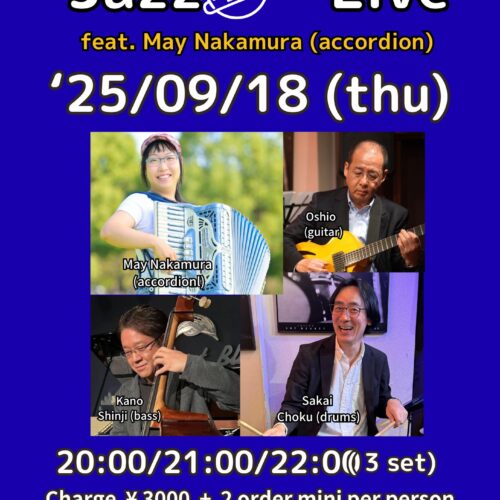 中村メイ(acc)、Oshio(g)、加納真治(b)、阪井ちょく(ds)