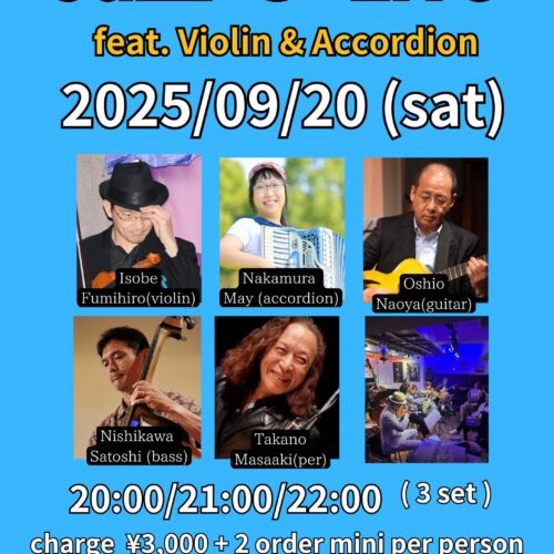 磯部史浩(vn)、中村メイ(acc)、大塩直哉(g)