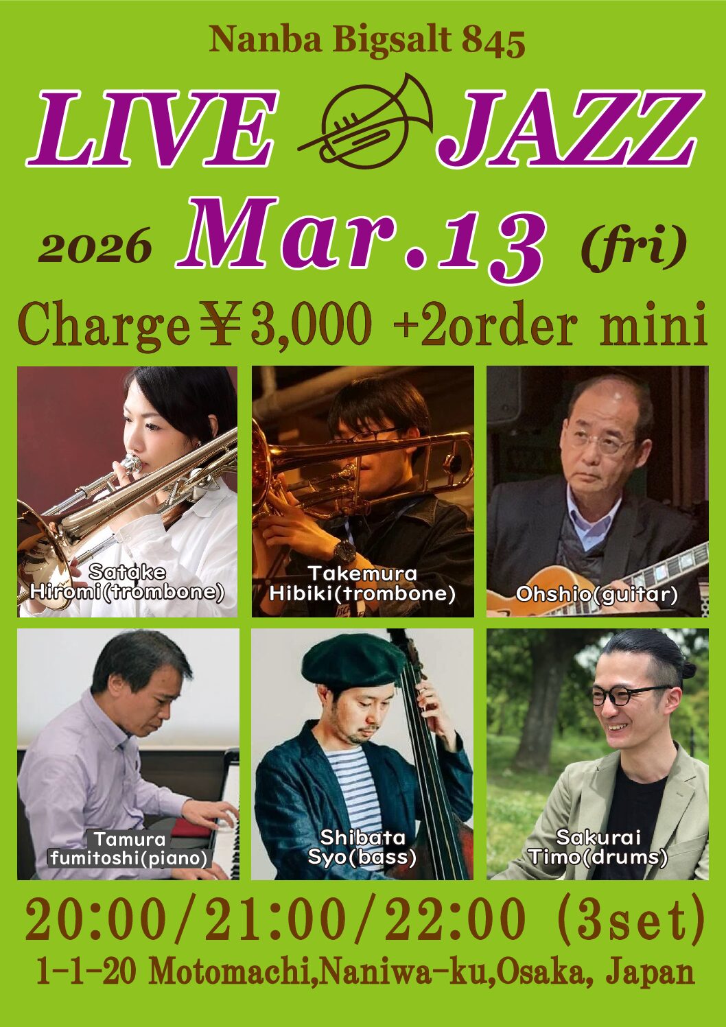 佐竹寛美(tb),宮澤優樹(tb), 田村文利 (p), Oshio(g),芝田奨(b), 櫻井ティモ(ds)