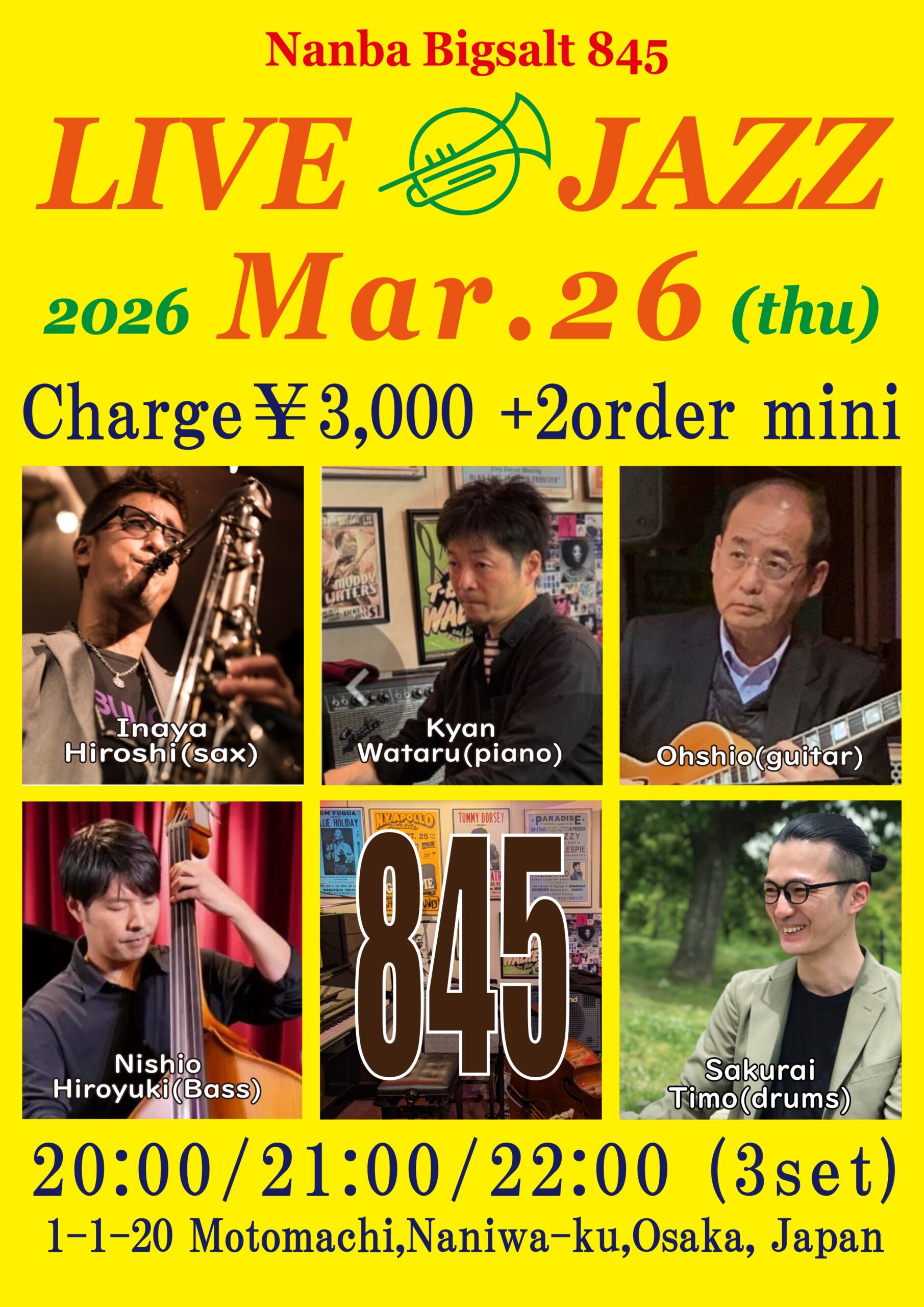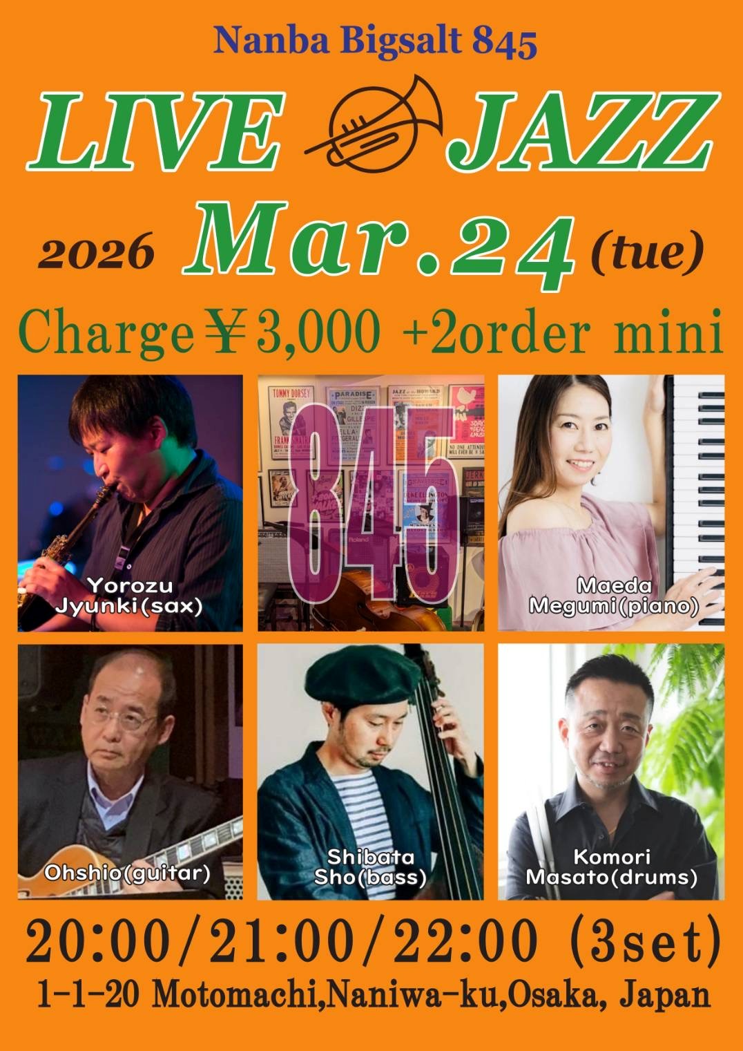 里村稔(sax),松岡佐也可(p), Oshio(g),近藤哲生(b),藤木亨(ds)