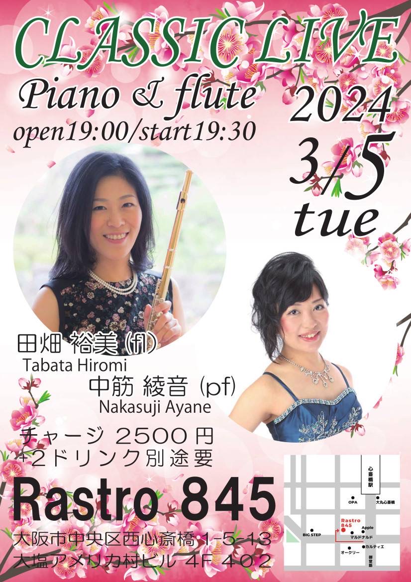 Classic Live 3月 5 Tue 2024 心斎橋 / Rastro845 メンバー 田畑裕美(fl) 中筋綾音 (p) チャージ¥2500+2オーダー別途要 前のスケジュール 次のスケジュール