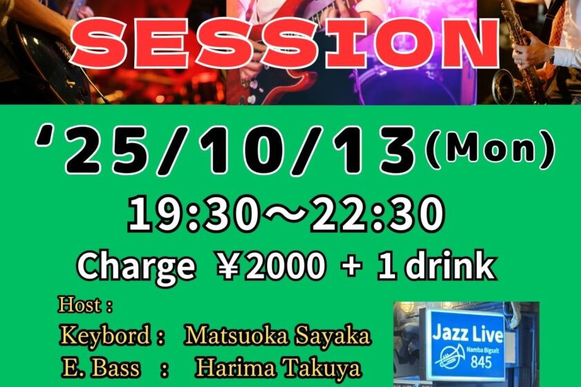 Funk Session 10月 13 Mon 2025 難波 / Bigsalt845 メンバー 松岡佐也可(p)、ハリマタクヤ(eb)、阪井ちょく(ds)、Oshio(g) チャージ¥2000+1オーダー別途要 前のスケジュール 次のスケジュール