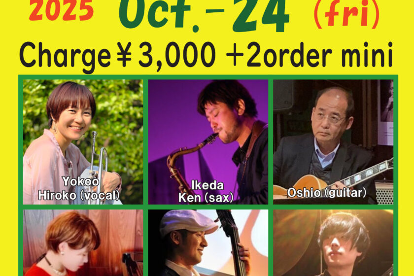 Jazz Live 10月 24 Fri 2025 難波 / Bigsalt845 メンバー 横尾拓子(tp,vo)、池田ケン(sax)、秋山莉恵(p) Oshio(g)、真木毅(b)、藤木亨(ds) チャージ¥3000+2オーダー別途要 前のスケジュール 次のスケジュール