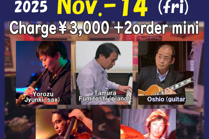 萬淳樹(sax)、Oshio(g)、田村文利(p)、香山正人(b)、小林真琴(de)
