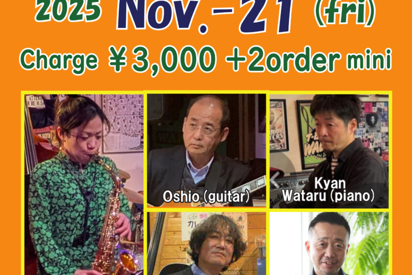 青山加世子(sax)、竹村響(tb)、喜屋武弥(p)、Oshio(g)