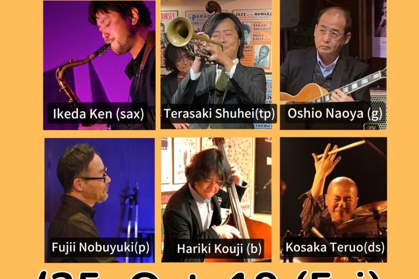 Jazz Live 845 The Jazz Sextet (毎月出演) 10月 10 Fri 2025 難波 / Bigsalt845 メンバー 寺崎周平(tp)、池田ケン(sax)、Oshio(g) コウサカテルオ(ds)、藤井信之(p)、張木浩司(b) チャージ¥3000+2オーダー別途要 前のスケジュール 次のスケジュール