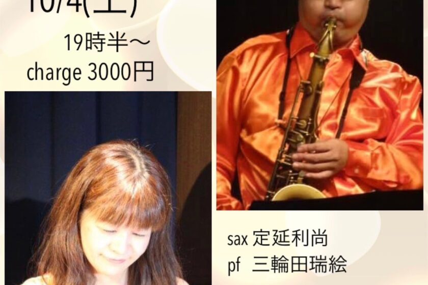 Jazz Session 10月 4 Sat 2025 心斎橋 / Rastro845 メンバー 定延利尚(sax)、三輪田瑞絵(pf) チャージ¥3000+2オーダー別途要 前のスケジュール 次のスケジュール