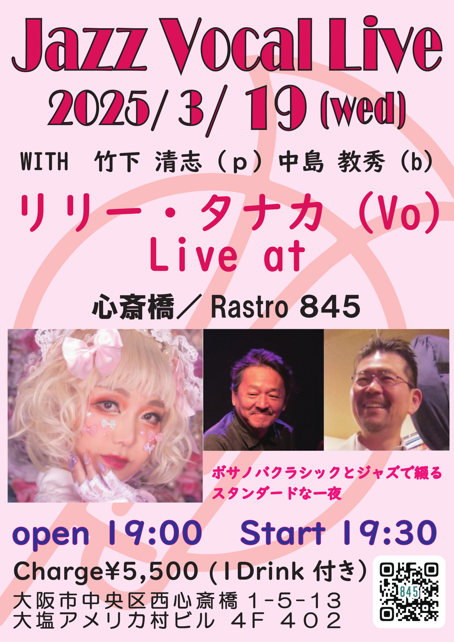 Jazz Vocal Live 3月 19 Wed 2025 心斎橋 / Rastro845 メンバー リリー・タナカ (vo) 竹下清志 (p) 中島教秀 (b) チャージ¥5500 (1ドリンク付) 前のスケジュール 次のスケジュール