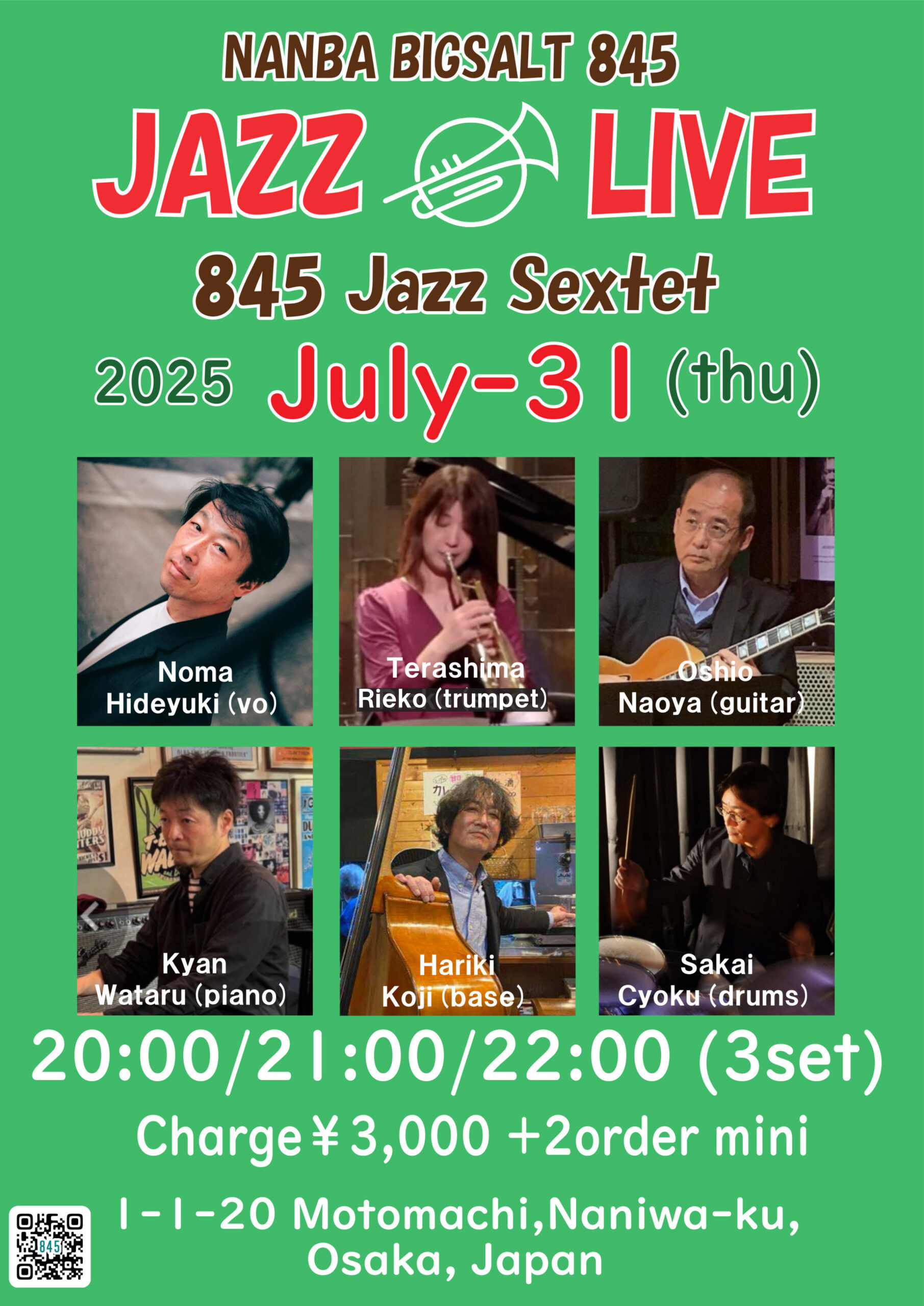Oshio(g)、張木浩司(b)、阪井ちょく(ds)