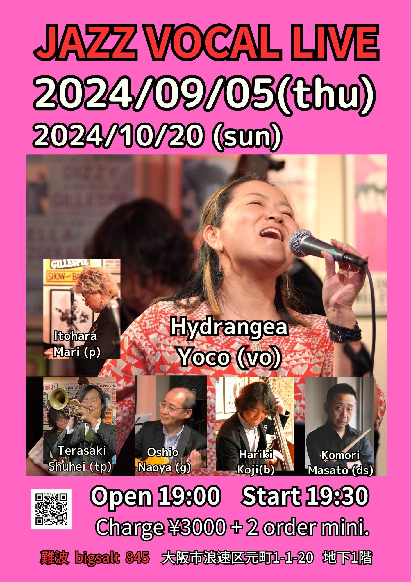 Jazz Vocal Live / Hydrangia 6 (sextet) 9月 5 Thu 2024 難波 / Bigsalt845 メンバー はいどらんじあ Yoco (vo)、寺崎周平(tp) 大塩直哉(g), 糸原摩理(p) 張木浩司 (b)、小森まさと(ds) チャージ¥3000+2オーダー別途要 前のスケジュール 次のスケジュール